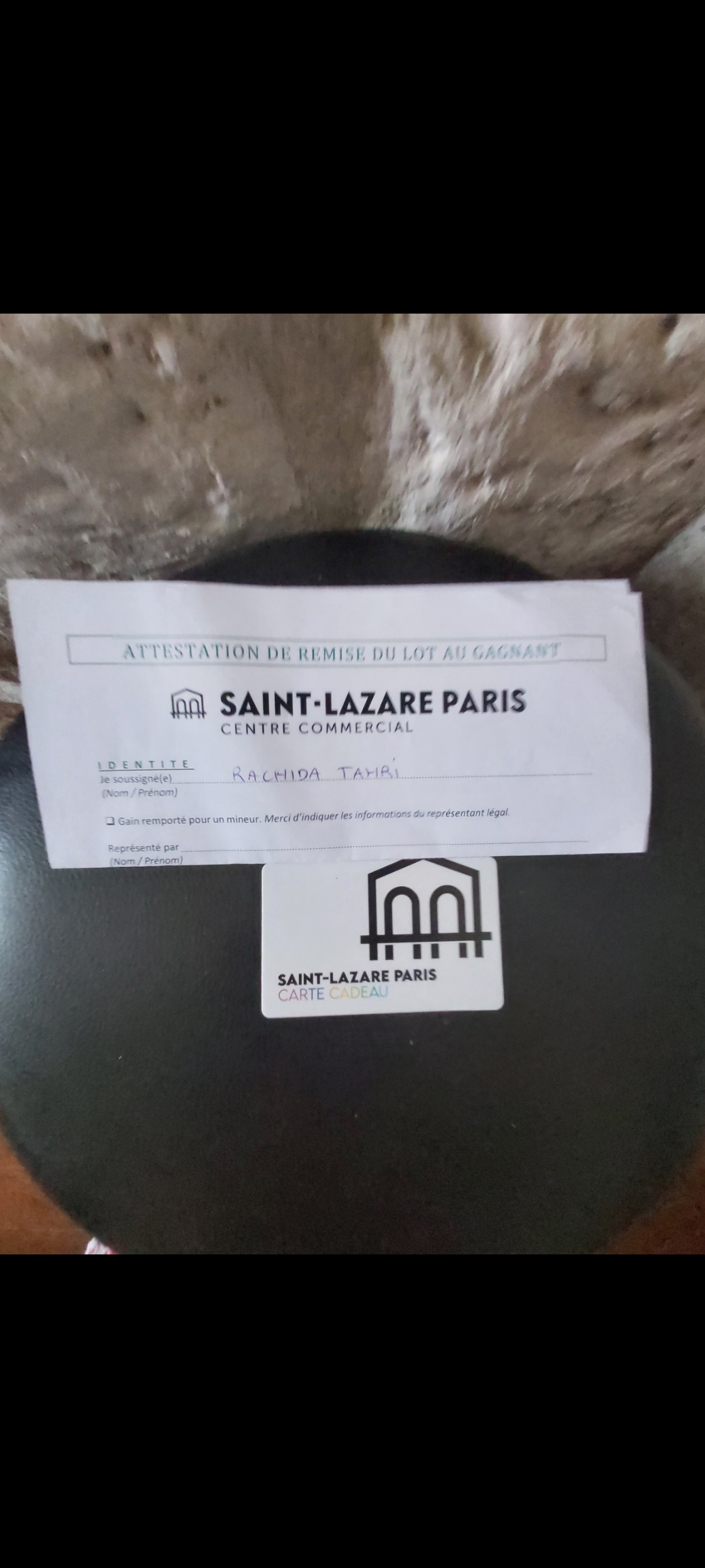 « Gagné au concours Saint-lazare Paris sur Instagram reçu par lettre recommandée avec signature merci à eux et au Génie. »