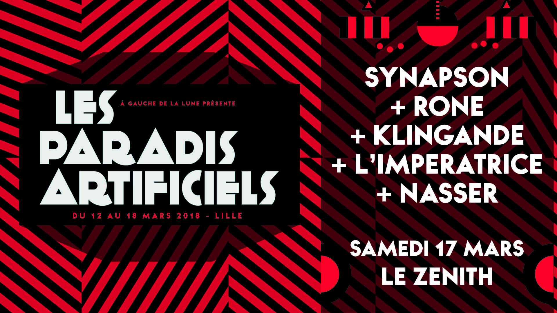 Des places à gagner pour le concert de Synapson + Rone + Klingande + L'Impératrice + Nasser au Zénith de Lille dans le cadre du festival Les Paradis Artificiels.