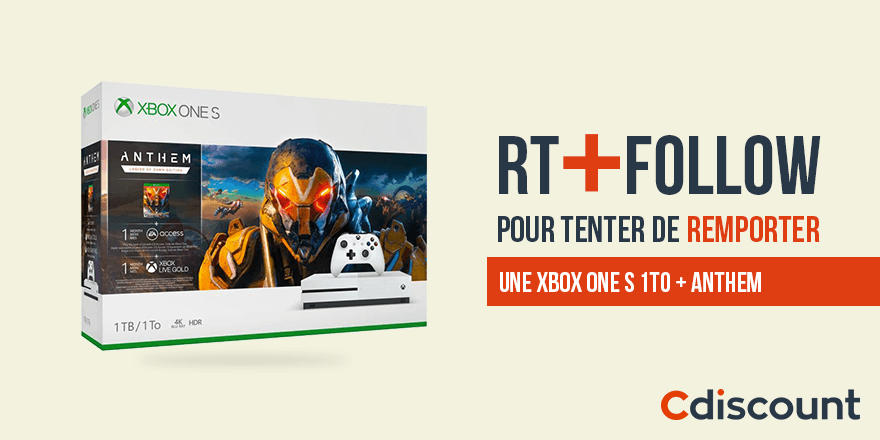 • 1 console de jeux Xbox One S avec le jeu "Anthem"