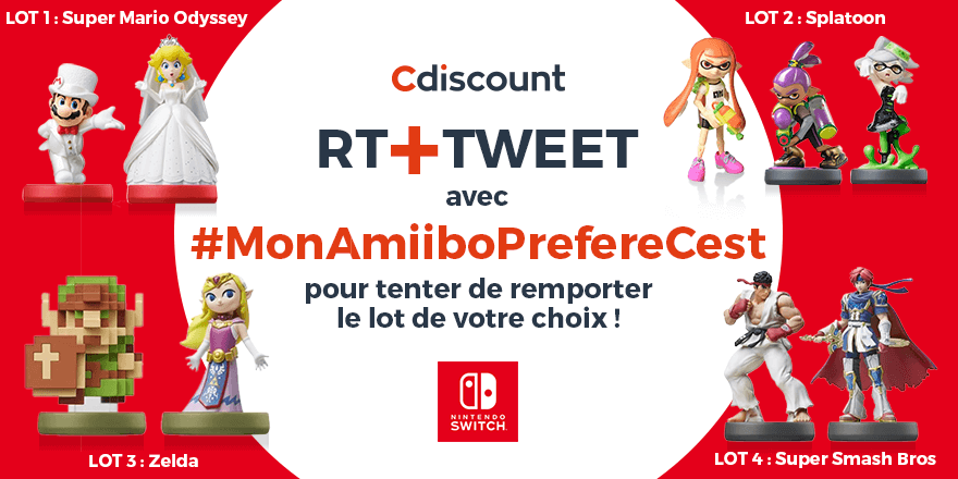Concours Twitter : RT le tweet avec le #MonAmiiboPrefereCest + Follow le compte pour participer au tirage au sort.