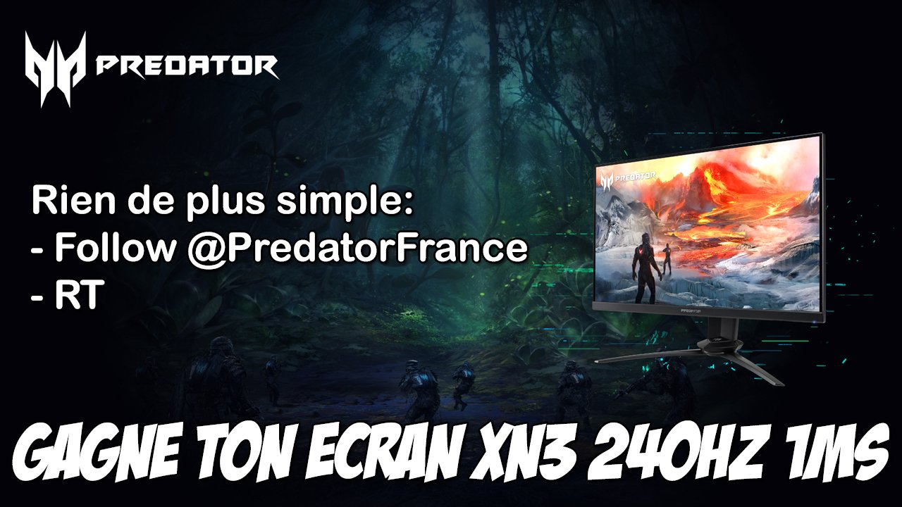 Un PC Gamer et un écran pour cette #PGW c'est super génial, mais faire mieux avec un Écran Gamer 240Hz et 1ms d'une valeur de 500€ c'est super génial aussi non ? 👀 🔥 Pour le gagner rien de plus simple : - Tu follow @PredatorFrance - Tu #RT C'est pas fini 👨🏻 Tirage 12 Nov