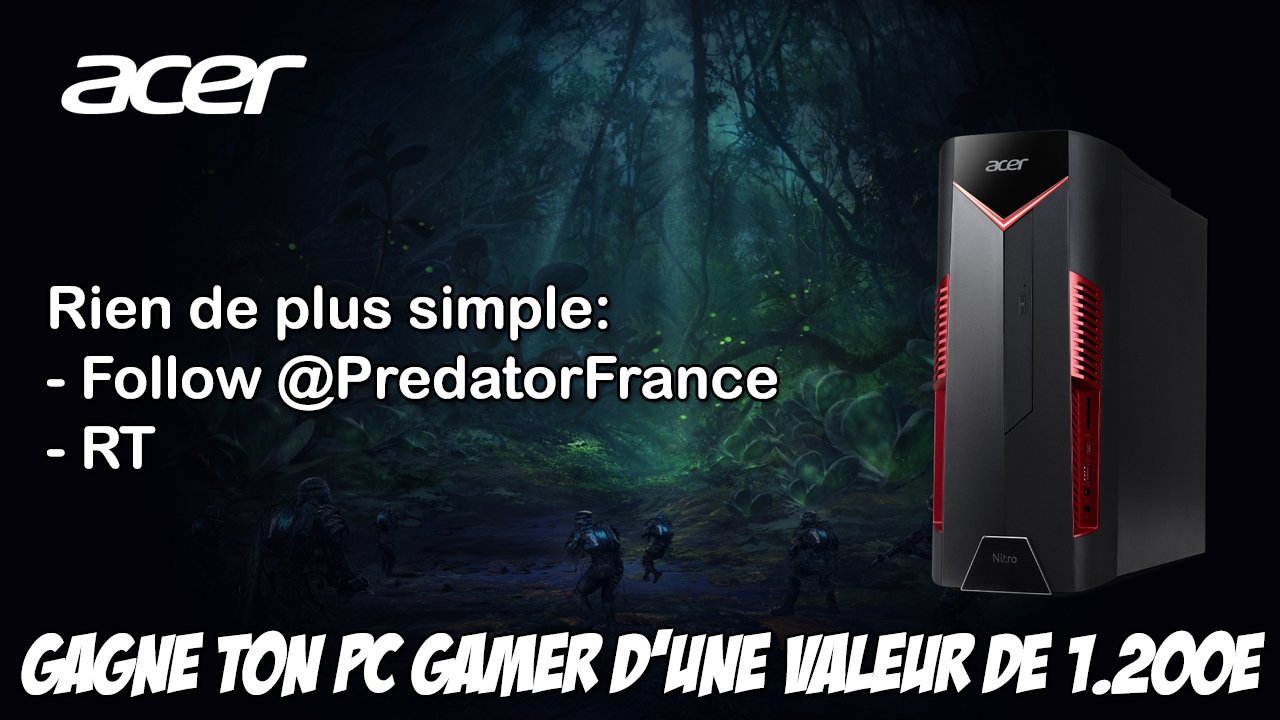 On commence calmement cette #PGWPredator par un PC Gamer d'une valeur de 1.200€ ça vous chauffe ? 👀 🔥 Pour le gagner rien de plus simple : - Tu follow @PredatorFrance - Tu #RT Ce n'est que le début 👨🏻 Tirage Lundi 11 Novembre