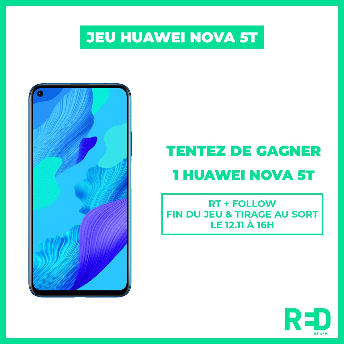 [#Concours] Il est tout nouveau et tout beau, on vous fait gagner un #Huaweinova5T ! Pour tenter de le gagner : RT + Follow @REDbySFR Fin du jeu et tirage au sort le 12/11 à 16h !
