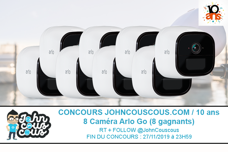 @wootbox_fr 🎮2ème #concours des 10 ans : des caméras Arlo Go à gagner (offertes par @arlosmarthome) 🎁8 caméras Arlo Go 👉RT + Follow @JohnCouscous 👍8 gagnants ⏱️Fin du concours le 27/11 🌍Plus d'infos : https://t.co/18RW2n0rjP