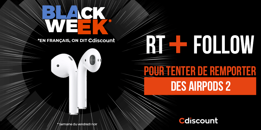 🎁 #Concours Une paire de AirPods 2 ça vous tente : https://t.co/Iq4NtUotcv ? ⚡️ Pour tenter de la remporter : 🔸 RT ce tweet 🔸 FOLLOW @Cdiscount ⏰ TAS le 27/11