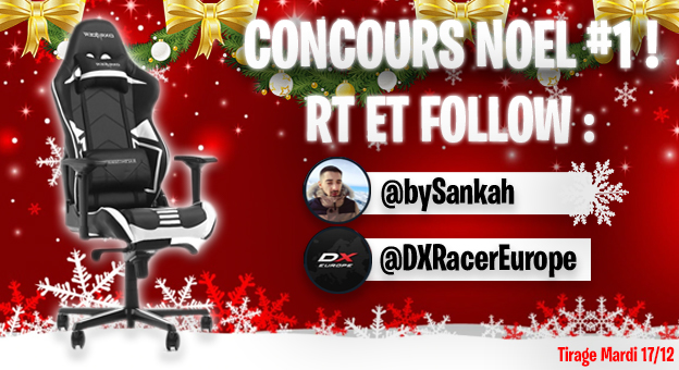 Concours de Noël #1 🎄🎁 Un siège DXRacer à gagner ! (couleur au choix) 🔥 Pour participer : - #RT LE TWEET - #FOLLOW @bySankah & @DXRacerEurope Tirage le 17/12