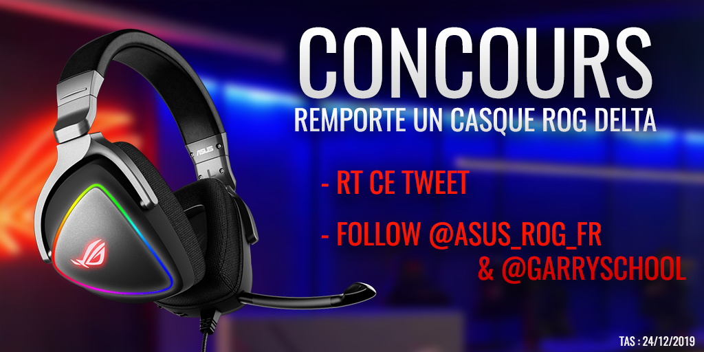 🎁 CONCOURS DE NOEL 🎁 On a voulu vous faire plaisir avec Asus, du coup on vous fait gagner un casque😄 Pour participer : - RT ce tweet - Follow @ASUS_ROG_FR & @garryschool Tirage au sort le 24/12/2019