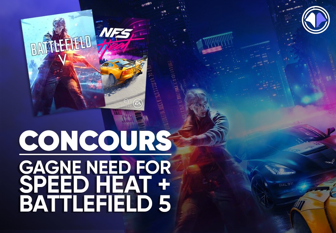 • 1 lot de 2 jeux vidéo "Need for Speed Heat" et "Battlefield V" sur la plateforme de votre choix