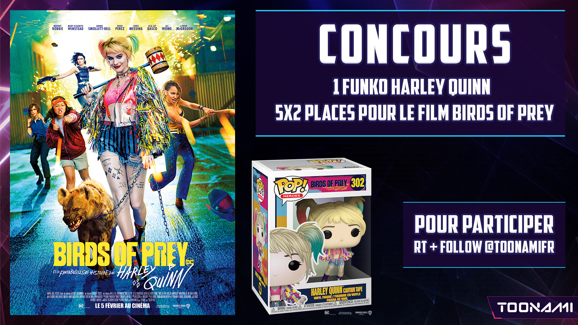 • 1 lot de 2 places de cinéma pour le film "Birds of Prey et la fantabuleuse histoire de Harley Quinn" avec une Funko Pop "Harley Quinn"