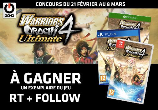 • 1 jeu vidéo "Warriors Orochi 4 Ultimate" sur la plateforme de votre choix