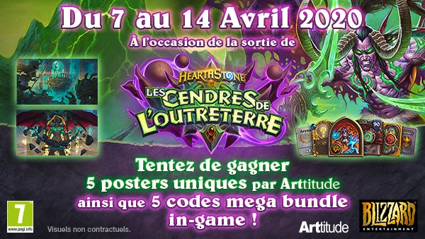 Pour le lancement de la nouvelle extension de HearthStone, Les Cendres de l'Outreterre (https://t.co/GXdQHIlwse), nous vous faisons gagner 5 packs composés d'un poster unique par @realarttitude et d'un code mega bundle in-game ! RT & Follow @Micromania_Fr, tas le 14 avril !