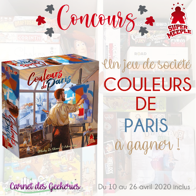 #CONCOURS 🎁 Le grand retour des concours avec un de mes coups de coeur ! Prêt à devenir un véritable artiste ? 🎨 🏆A gagner : Un jeu Couleurs de Paris ✌️ RT + Follow @_Hina___ et @SuperMeeple pour tenter votre chance 🌟TAS le 27/04 (Concours sur FB également) #j2s #bgg