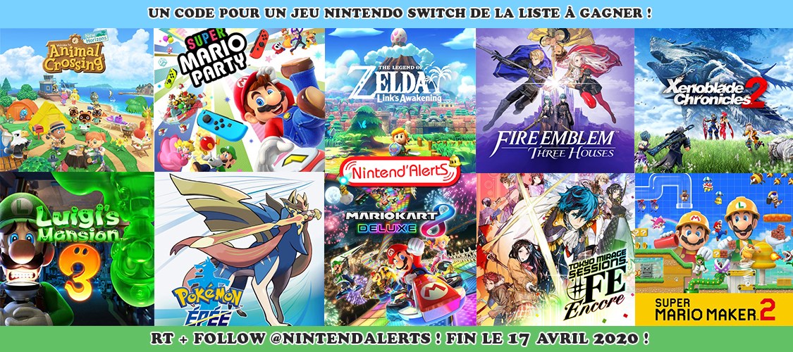 Concours : Un code pour un jeu Nintendo Switch au choix dans la liste à gagner ! Follow @nintendalerts, tague un ami et RT ce tweet. Fin le 17/04 ! Plus d'info sur le concours ici➡️ https://t.co/NAKuoMRibM