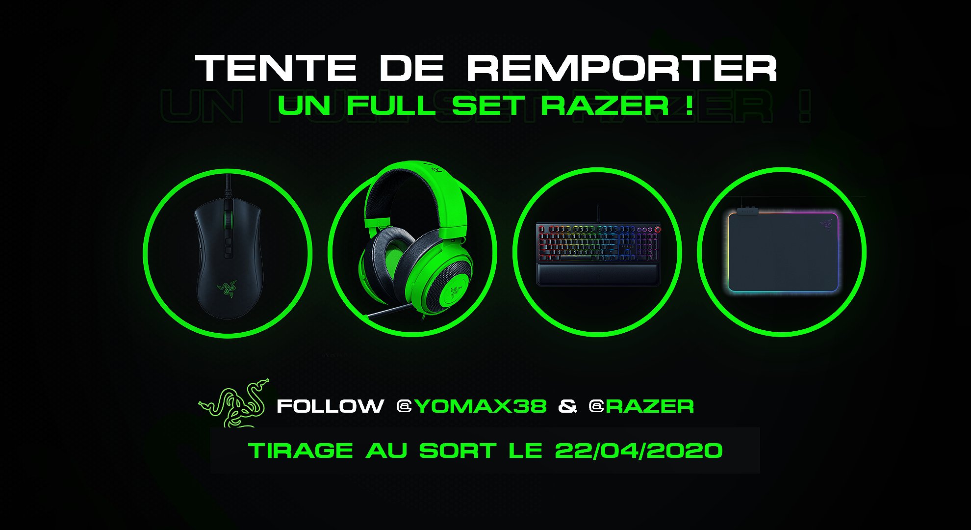 • 1 pack "Razer" composé de 1 casque audio + 1 clavier + 1 souris + 1 tapis de souris