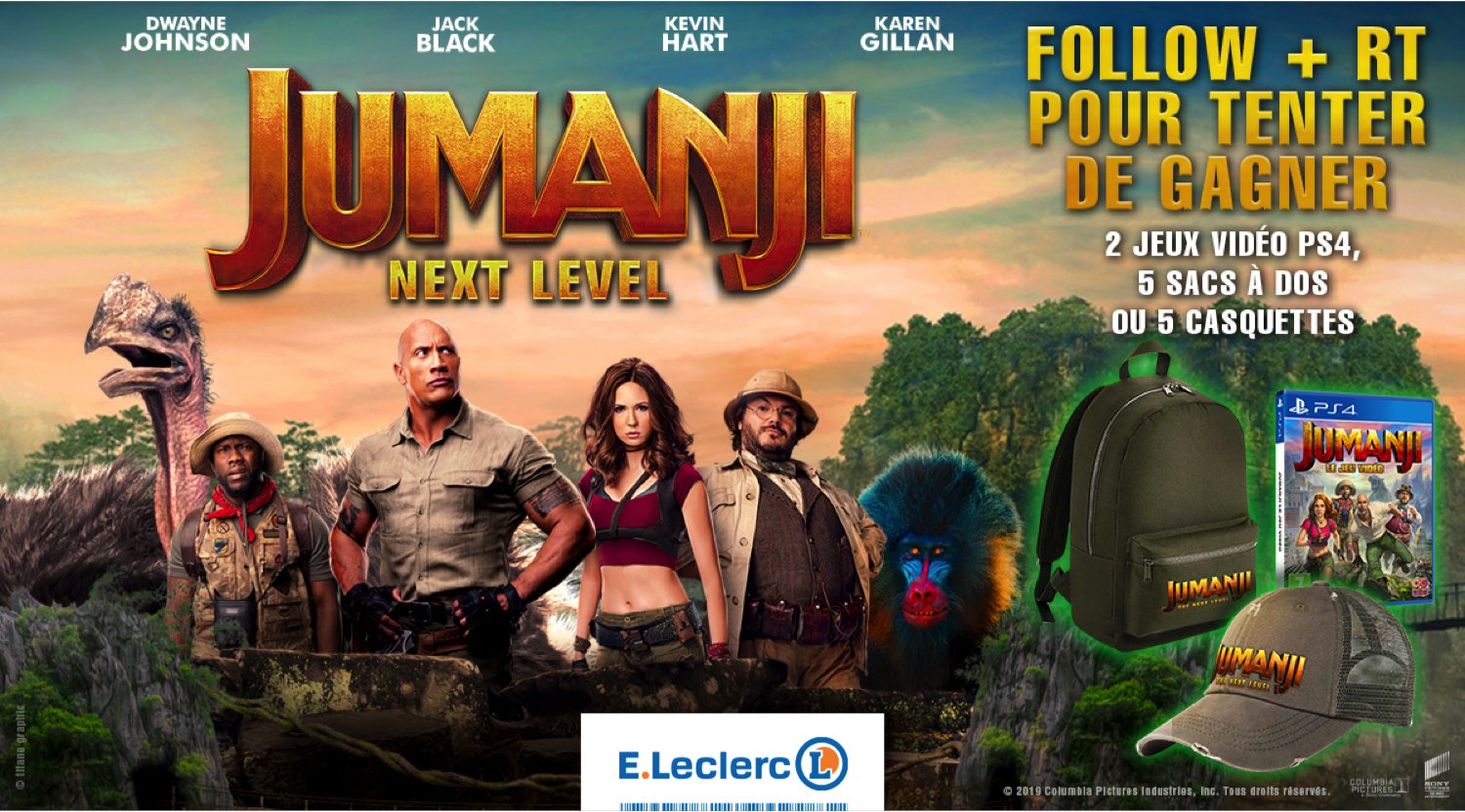 • 2 lots composés de 1 jeu vidéo PS4 "Jumanji" + 1 sac à dos + 1 casquette