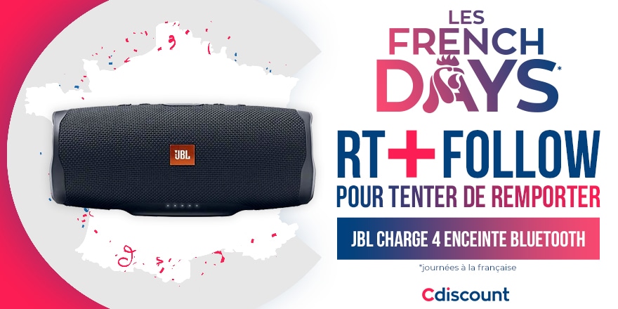 🎁 #Concours 🇫🇷 Dernier jour des #CdiscountFrenchDays, on vous offre une enceinte JBL Flip 4 ➡ https://t.co/rkZLxwM0BU Pour tenter ta chance : 🔸 Follow @Cdiscount 🔹 RT ce tweet ⏰ TAS 08/06