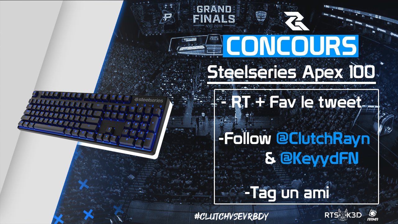 #Concours #Giveaway 🎁 On pense à vous et pour vous remercier de votre soutien rien de mieux qu'un #GIVEAWAY Nous vous proposons de gagner un clavier Apex 100 d'une valeur de 50€ 👀 - #RT & #FAV - Follow @ClutchRayn & @KeyydFN - Tag un ami T.A.S le 02/07 #ClutchVsEvrBdy
