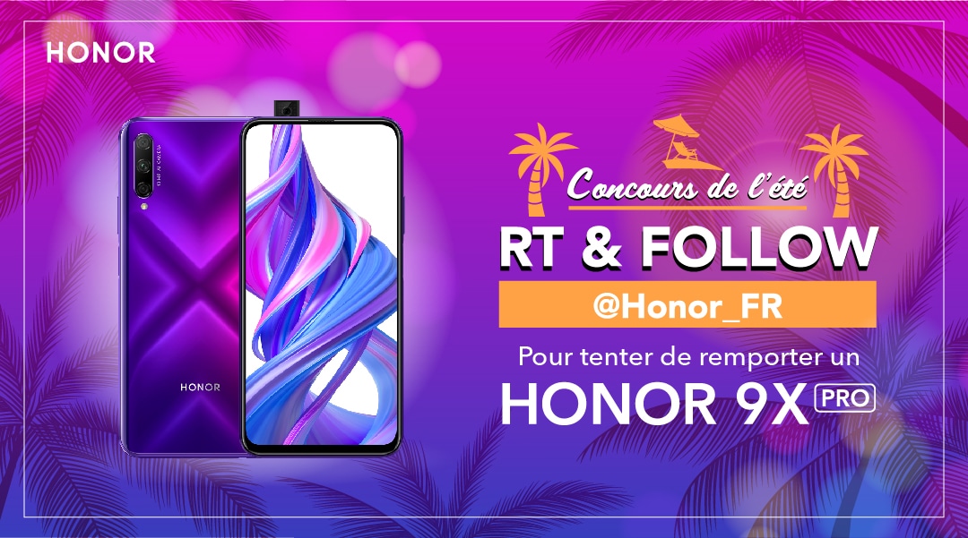 3ème concours de l'été HONOR ! ☀ Tentez de remporter un 9X Pro, parfait pour regarder vos séries et films préférés pendant tout l'été avec son écran FullView ! 📱 Pour participer : 🔄 RT ➡ Follow @Honor_FR TAS le 26/07 🍀