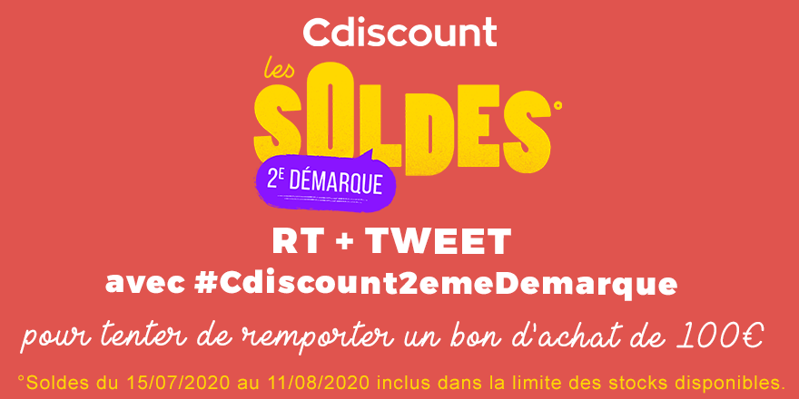 Concours Twitter : RT le tweet avec #Cdiscount2emeDemarque pour participer au tirage au sort.
