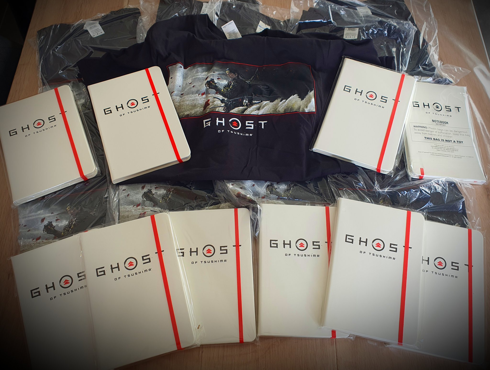 • 10 lots composés de 1 t-shirt + 1 bloc note "Ghost of Tsushima"