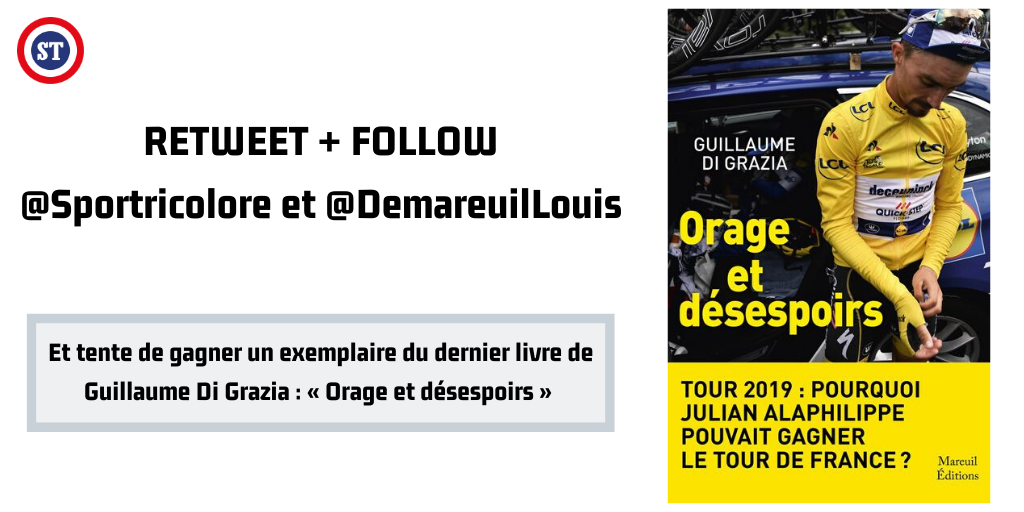 🇫🇷 JEU CONCOURS 🚨 On vous fait gagner un exemplaire du livre de @GDiGrazia : « Orages et désespoirs. Tour 2019 : Pourquoi Julian Alaphilippe pouvait gagner le Tour de France ? » 🎁 ✅ RT + FOLLOW @sportricolore et @DemareuilLouis pour participer au concours ‼️ 🍀 TAS le 27/07