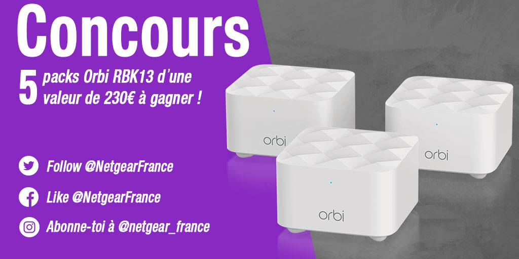 Jeu Netgear n°302887 pour gagner 1 routeur wifi Orbi Netgear (230 euros)