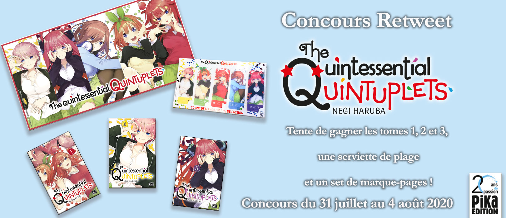 • 1 lot "The Quintessential Quintuplets" composé de 1 serviette de plage + les 3 premiers tomes + 5 marque-pages