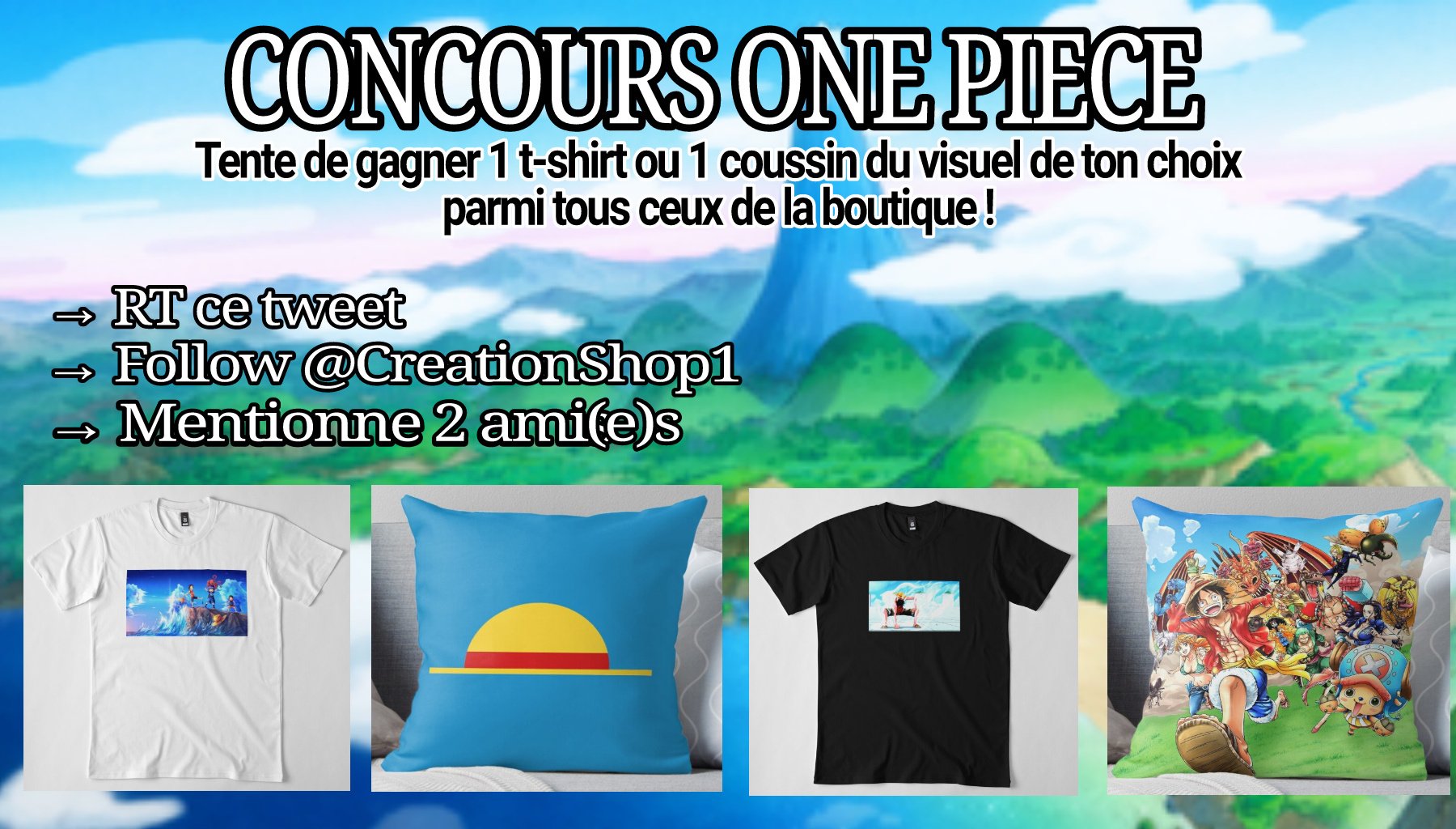 🎁 #CONCOURS #ONEPIECE 🎁 Tente de gagner 1 t-shirt ou 1 coussin du visuel de ton choix parmi TOUS ceux de la boutique ! 👇🏽 https://t.co/KoO1C60Tr6 Pour participer : ➡️ RT ce tweet ➡️ Follow @CreationShop1 ➡️ Mentionne 2 ami(e)s Tirage au sort le 20/09 Bonne chance 😉