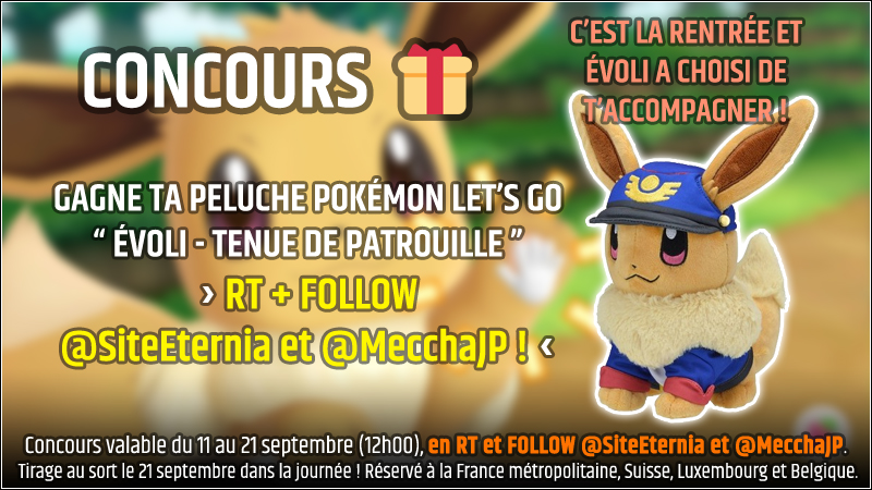 #CONCOURS 🎁 Triste de ne pas avoir gagné ta peluche d'Évoli l'autre jour ? Aucun souci, on en fait gagner une autre grâce à Meccha-Japan ! 👉RT + follow @MecchaJP et @SiteEternia ! 👈 Fin du concours le 21 septembre à 12h00 !