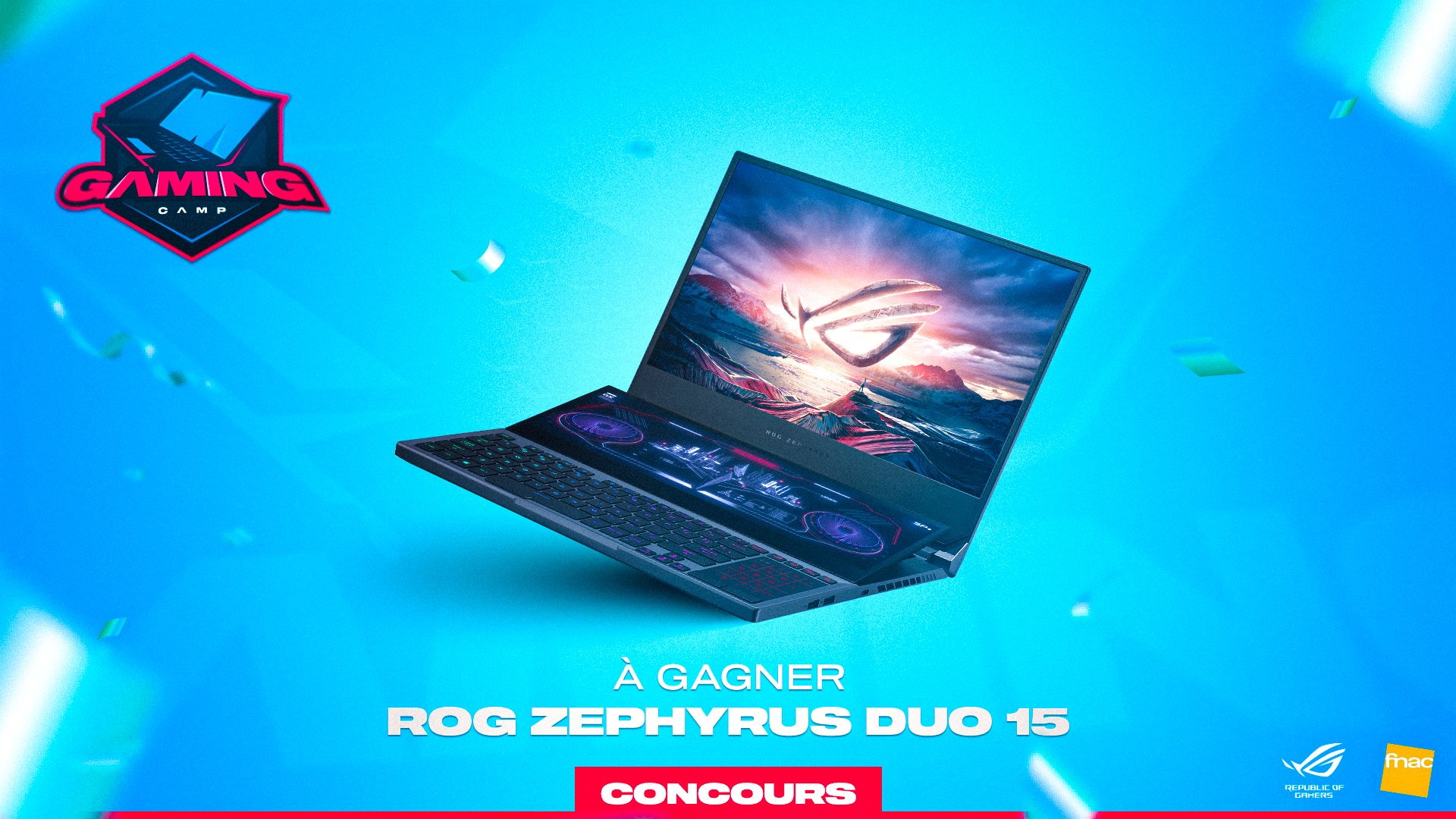 🎁 #CONCOURS 🎁 A l'occasion du #GamingCamp2020, on vous fait gagner un ROG Zephyrus Duo 15 d'une valeur de 3999€ ! Pour participer : RT + FOLLOW : @ASUS_ROG_FR & @Fnac Commente avec #GamingCamp2020 et ton meilleur moment du Gaming Camp 2020.