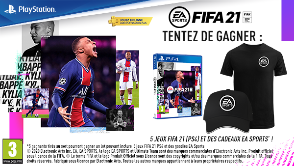 Jouez pour gagner 1 jeu vidéo PS4 "FIFA 21" avec des goodies EA Sports