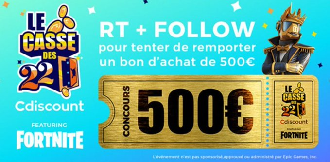 • 1 bon d'achat Cdiscount de 500 euros