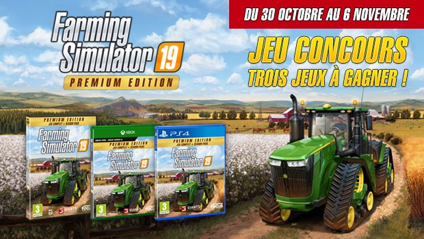 • 3 jeux vidéo "Farming Simulator 19" sur PC, PS4 ou Xbox One