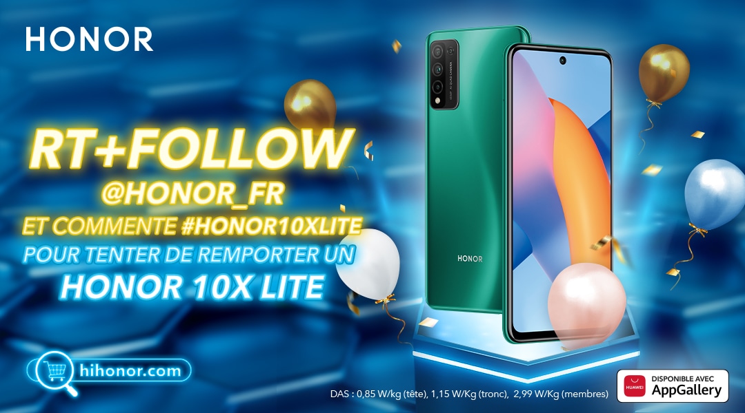 Concours Twitter : follow le compte + retweet avec #Honor10XLite.