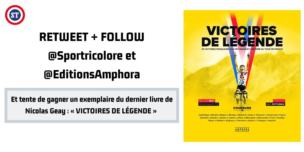 🇫🇷 JEU CONCOURS 🚨 On vous fait gagner 1 exemplaire du dernier livre de @Nicogeay 🎁 Avec des interviews d'@alafpolak1, @WarrenBarguil, @ThibautPinot ou encore @voecklerthomas... ✅ RT + FOLLOW @sportricolore et @EditionsAmphora pour participer au concours ‼️ 🍀 TAS le 30/11
