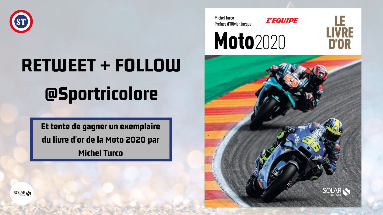 🇫🇷 JEU CONCOURS 🚨 On vous fait gagner un exemplaire du livre d'or de la Moto 2020 par @M_Turco 🎁 Avec une préface signée Olivier Jacque, champion du monde en 2000 🏍️ ✅ RT + FOLLOW @sportricolore pour participer au concours ‼️ 🍀 TAS le 22/12