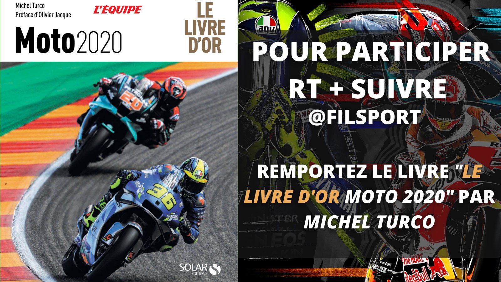 🎁#Concours Bonne nouvelle @FilSport fait gagner "Le livre d'or moto 2020 " aux éditions Solar Pour participer, c'est très simple : ✅Like+RT+follow @FilSport participez aussi via notre page FB https://t.co/Jgay8A1G7z #MotoGP #Giveaway #moto #cadeau #JeuConcours #giveaways