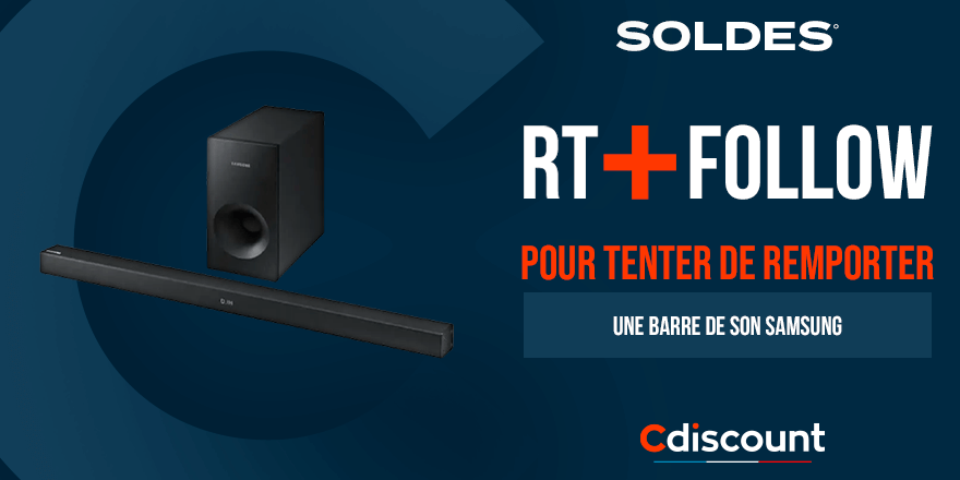 #Concours 🎁 C'est le premier jour des #CdiscountSoldes ! On vous régale avec une barre de son Samsung : https://t.co/Hz6IemeGHo Pour tenter ta chance : 🔹 RT + Follow @Cdiscount 🍀 TAS le 25/01