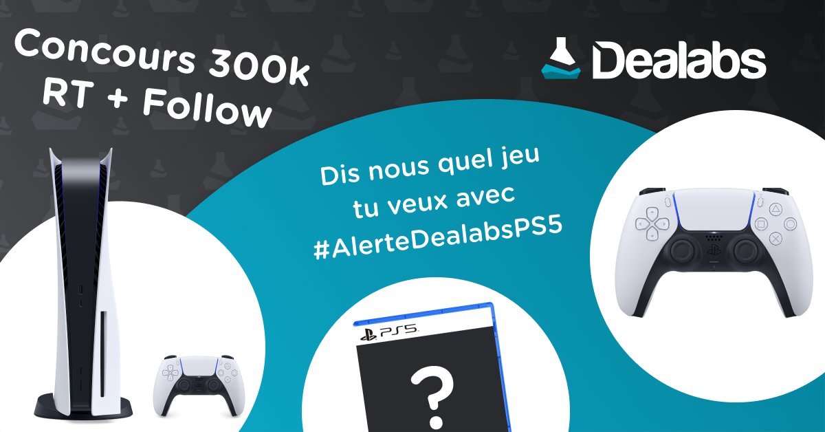 🔥 Nouveau concours pour fêter les 300K followers (merci la team ! ❤) Gagne une PS5 + une 2ème manette + un jeu ! 🎮 1⃣ RT + Follow @Dealabs 2⃣ Commente avec #AlerteDealabsPS5 + le jeu que tu veux 🔔 Pour ne pas rater les prochaines ventes #PS5 ➡ https://t.co/gPC4mE4Qom ⬅