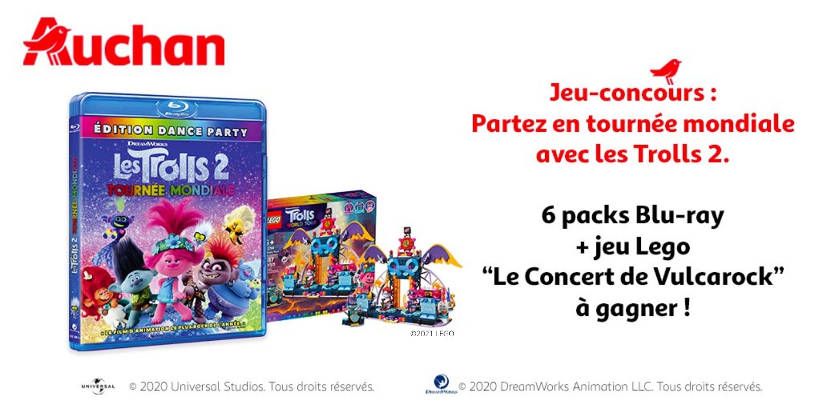 • 1 lot composé de 1 jeu LEGO "Les Trolls" + 1 Blu-ray "Les Trolls 2"