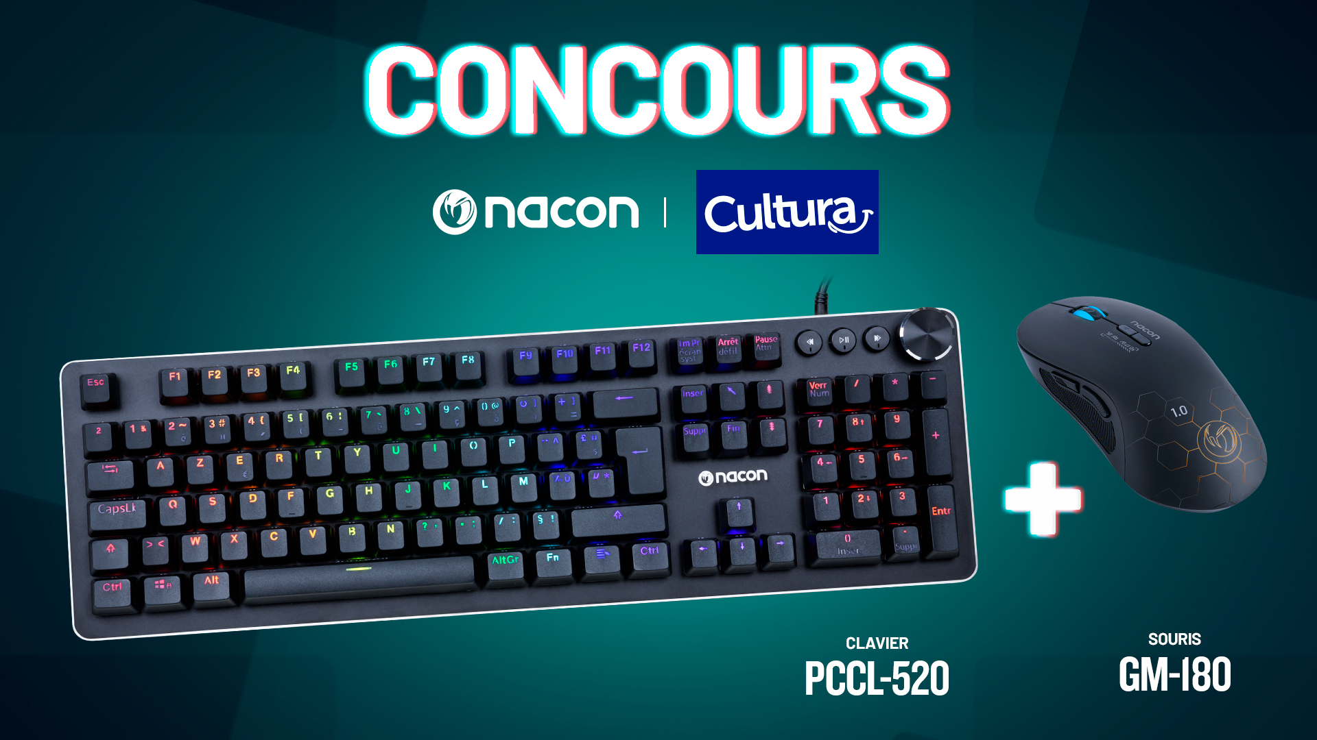 #JeuConcours : Tu veux essayer notre nouvelle gamme PC ? Tente de remporter le clavier mécanique CL-520 et notre souris Gaming sans-fil GM-180 ! 🥳 Pour participer : 1⃣ RT ce tweet 🔃 2⃣ Follow les comptes @Cultura et @NaconFR🙌 #RevealYourSkills #Nacon