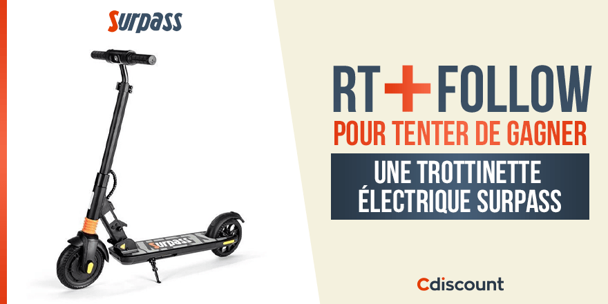 🎁 #Concours Aujourd'hui, on vous régale une trottinette électrique de notre marque Surpass : https://t.co/gy9MuIrLao Pour tenter ta chance : 🔹 RT + Follow @Cdiscount 🍀 TAS le 09/03