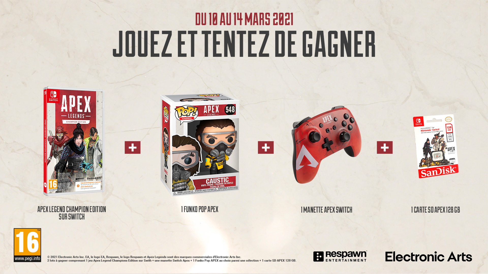 • 2 lots composés de 1 jeu vidéo Switch "Apex Legends" + 1 figurine POP! au choix + 1 manette Switch Apex + 1 carte SD Apex 128Go