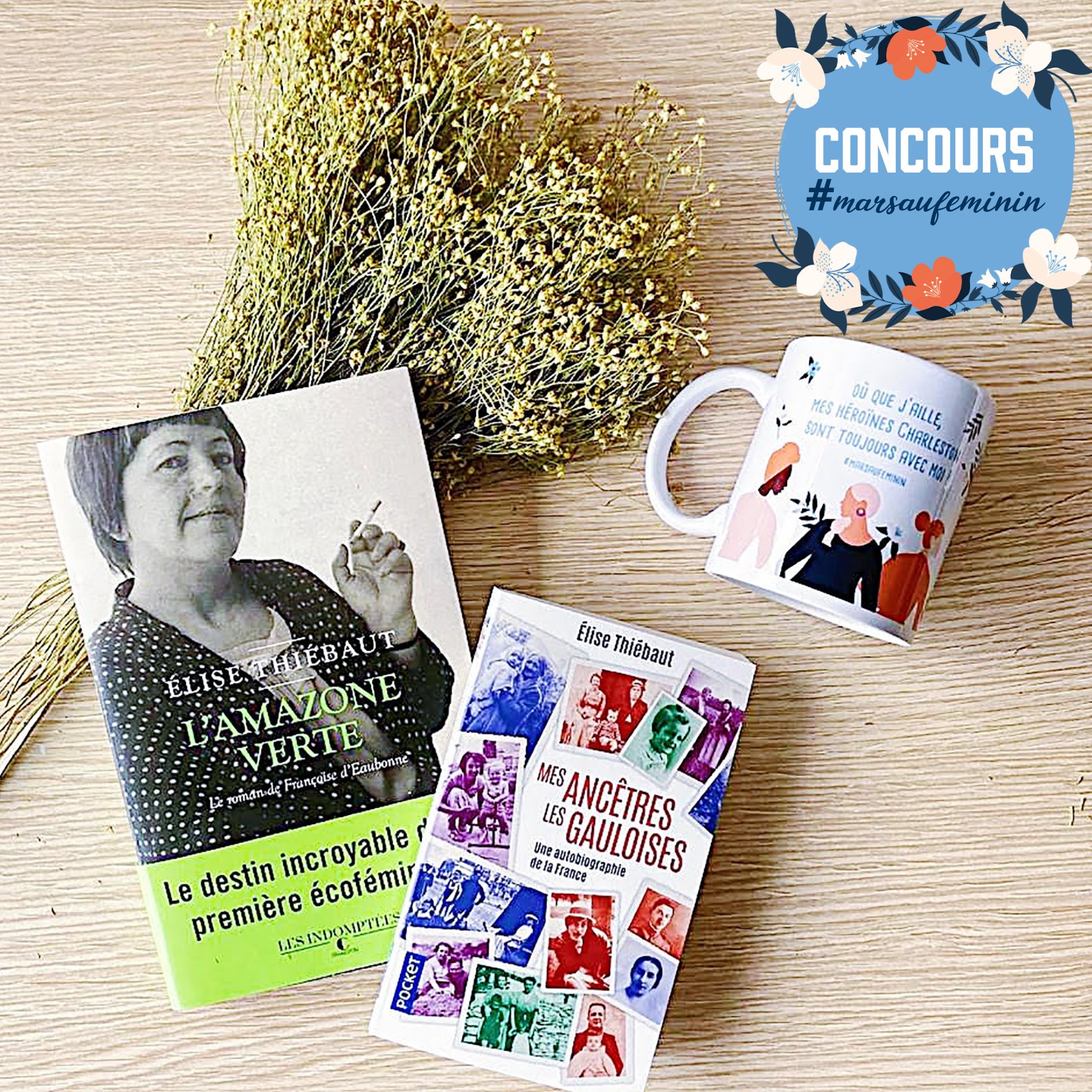 • 2 livres "L'Amazone verte" et "Mes ancêtres les gauloises" d'Elise Thiebaut avec 1 mug