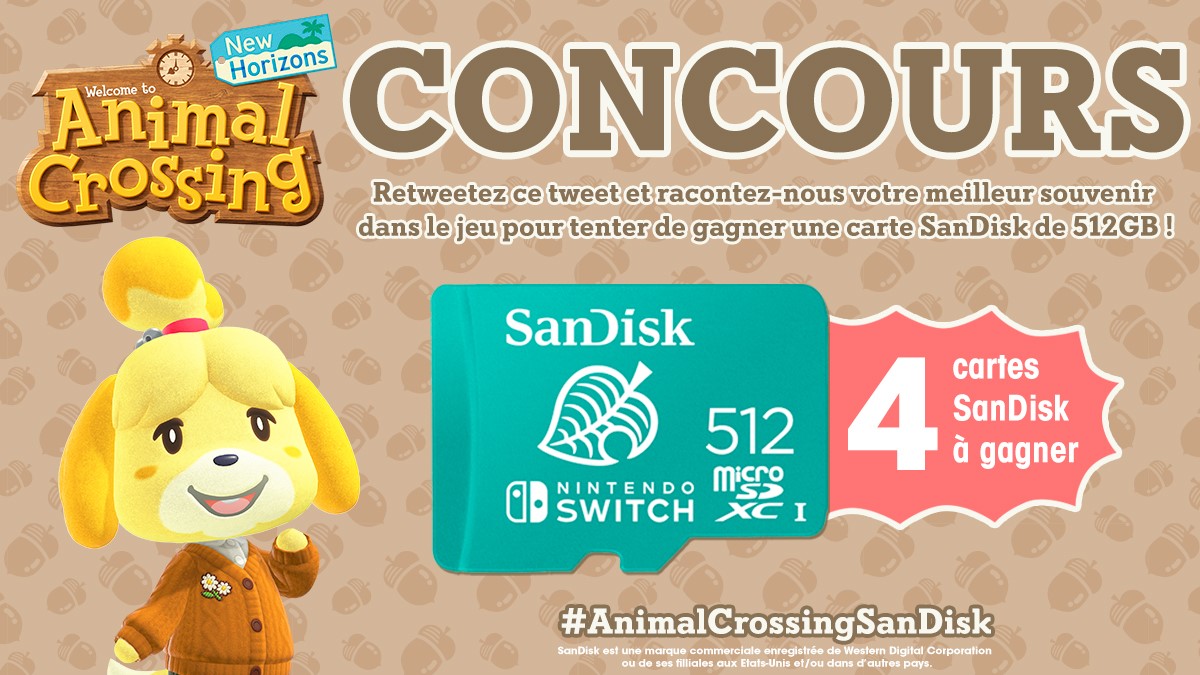Concours Twitter : follow le compte + retweet + commentez la publication #AnimalCrossingSanDisk".