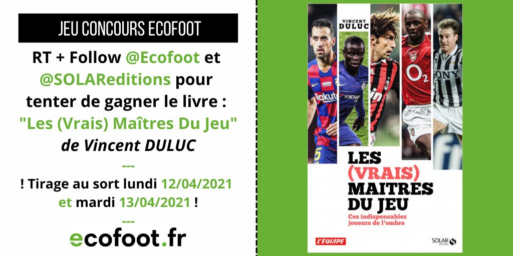 🎁[Jeu concours] Gagnez le livre : "Les (Vrais) Maîtres Du Jeu" de Vincent Duluc ! Un ouvrage évoquant ces indispensables joueurs de l’ombre ! ✅Pour jouer : RT + Follow @Ecofoot et @SOLAReditions 🍀TAS d'1 gagnant.e le lundi 12/04 et mardi 13/04 ! @AuziasLaure @vincentduluc