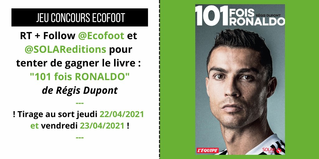 🎁 [Jeu concours] Gagnez le livre : "101 fois RONALDO" de Régis Dupont ! Une biographie originale du footballeur aux multiples records... ✅ Pour jouer : RT + Follow @Ecofoot et @SOLAReditions 🍀 TAS d'1 gagnant.e le jeudi 22/04 et vendredi 23/04 ! @AuziasLaure @regisdupont