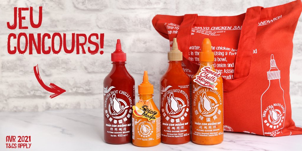 Suivez-nous et RT pour une chance de gagner ce more de Flying goose contenant les Sriracha Super Hot, Mayo épicée, extra aille, Mayo Piments doux et un tote bag! 🙌 #Competition #FreebieFriday