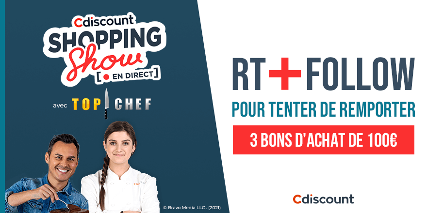 Live Shopping 🔴 Découvrez dès maintenant @hervecuisine et Charline Stengel pour un live #TopChef sur Cdiscount ➡ https://t.co/O7v8nU7Nvo 🎁 Et quoi de mieux que 3 bons de 100€ pour fêter ça ? Pour tenter ta chance : 🔶 RT + Follow @Cdiscount 🍀 TAS le 12/05