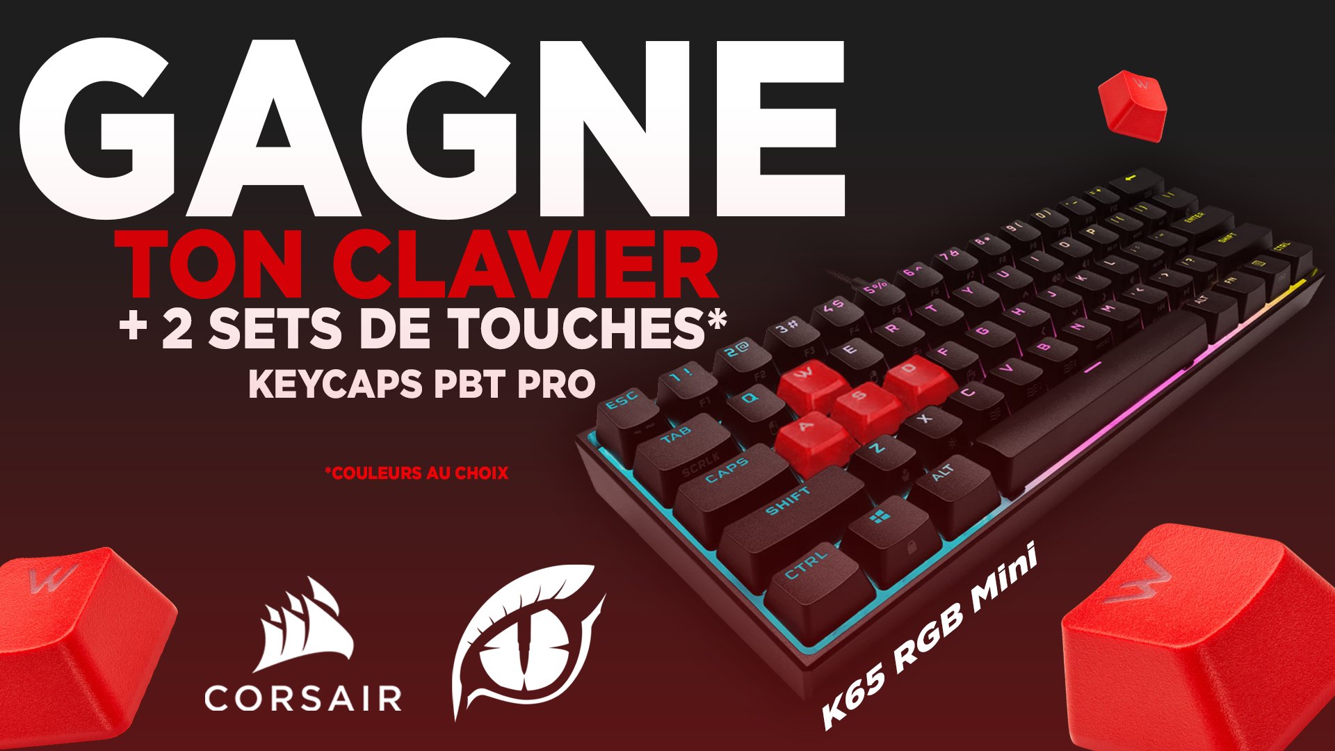 • 1 clavier K65 RGB Mini Corsair avec 2 sets de touches PBT Pro